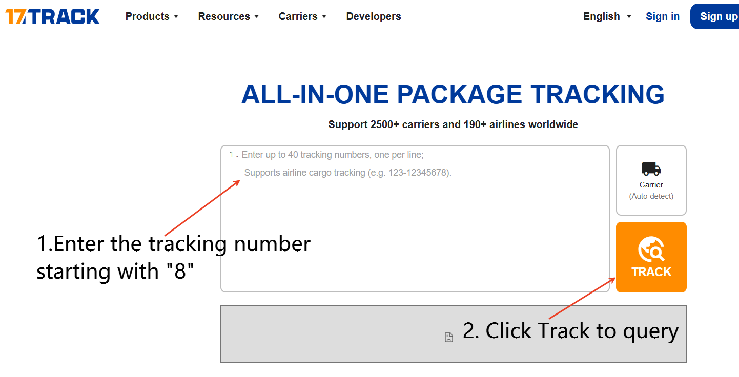 2. If the tracking number begins with "4PX" or "CP, CN", you can check it directly on the website without selecting a logistics provider.