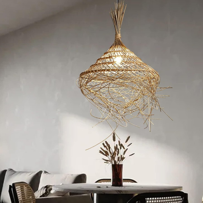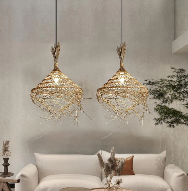 Wabi-sabi Hand-woven Rattan pendant Light For Living Room