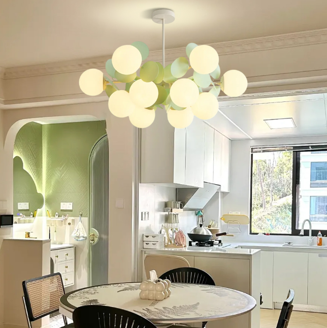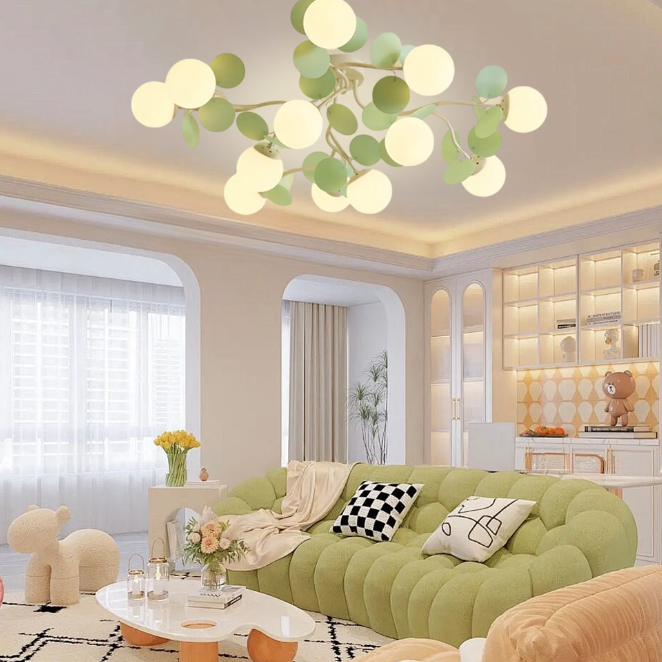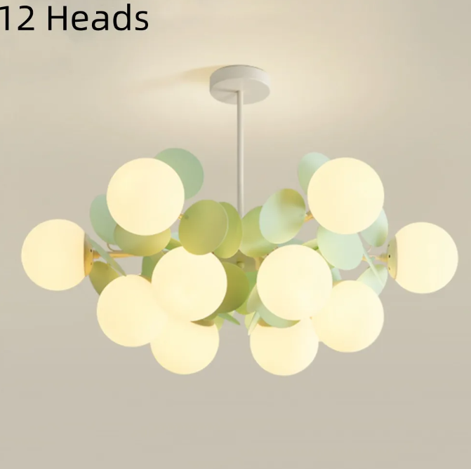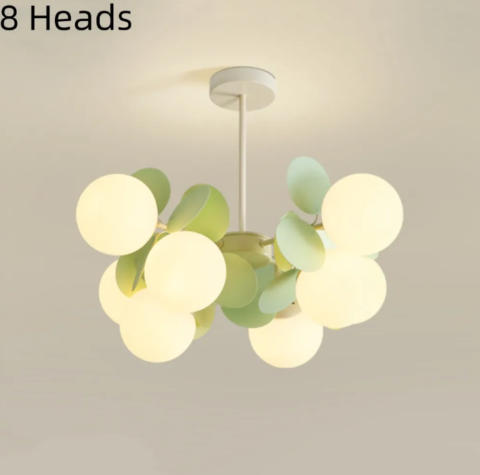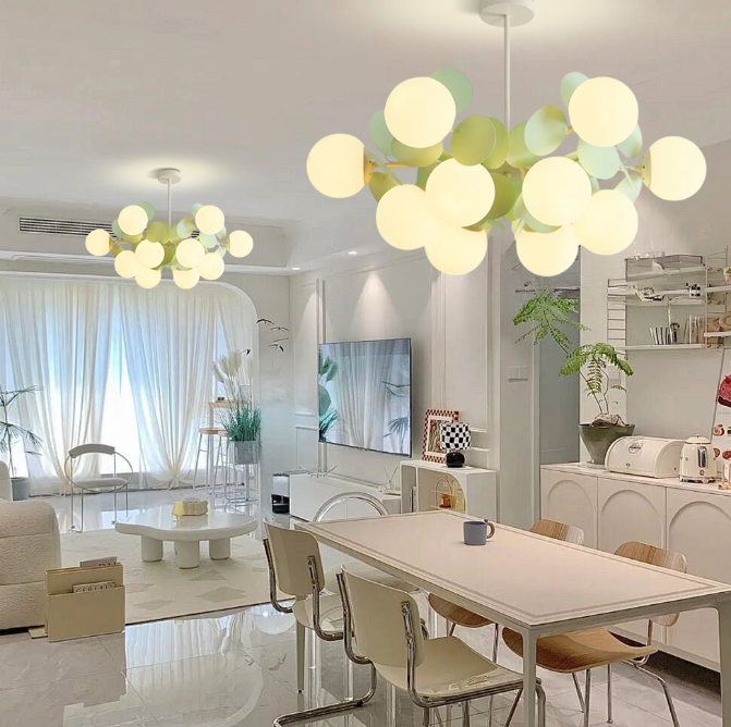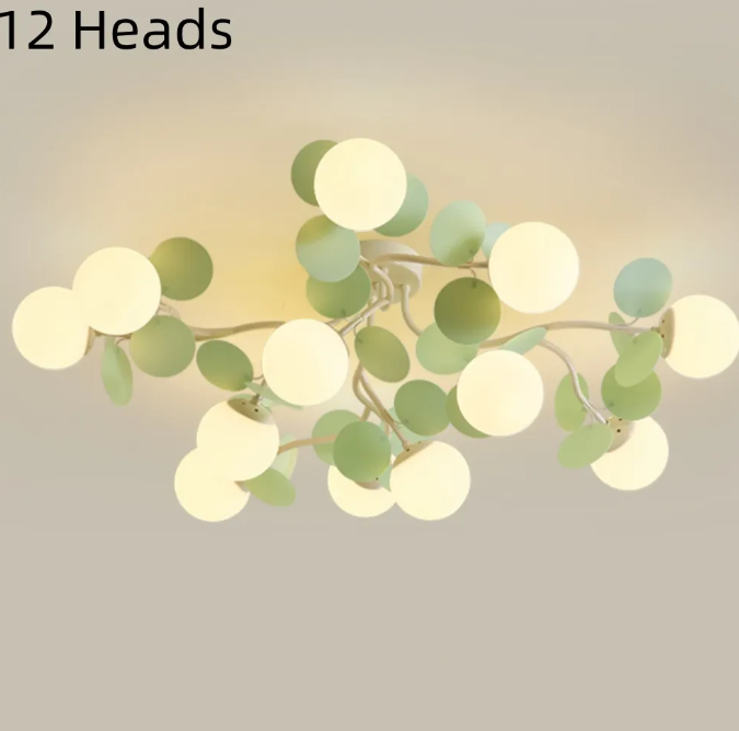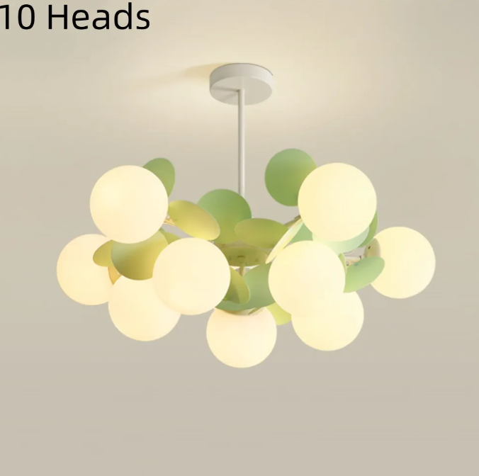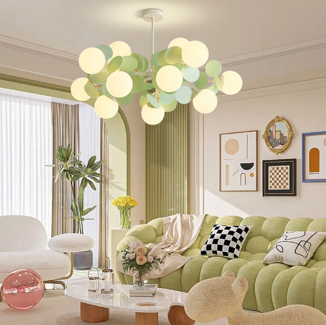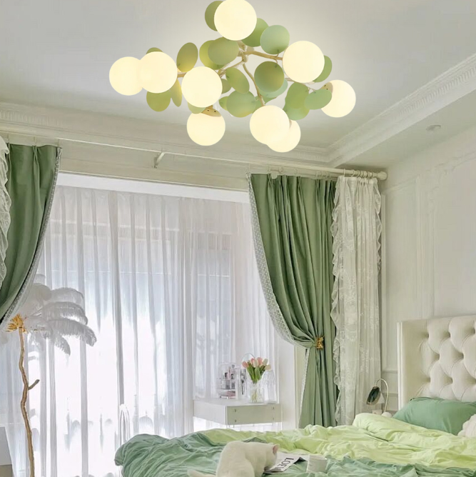 The unique spherical lampshade is decorated with fresh green leaves, and the multi-head design evenly distributes the light, providing just the right lighting for both the living room and the bedroom, filling every corner with an elegant French atmosphere.