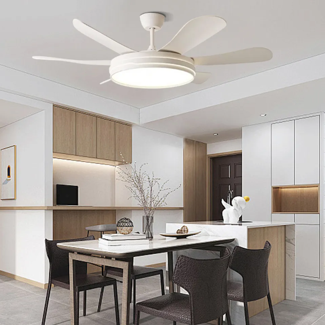 It has a 6-blade design that can generate unimaginably strong wind, sweeping away the stuffiness during summer dining. The simple and smooth appearance can easily adapt to various modern dining room decoration styles, bringing cool breezes and becoming a unique decorative focus in the space, adding a practical and exquisite touch to your dining room.