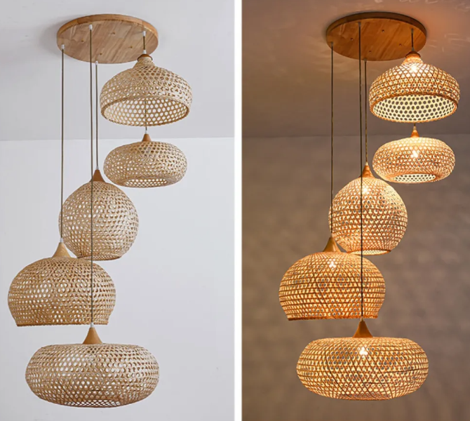 The rattan, bamboo, wooden and hemp rope chandeliers you purchase are 100% hand-woven. The disadvantage of hand-woven products is that there will be slight differences between the same lampshades. Thank you for understanding and respecting the labor success of every worker!