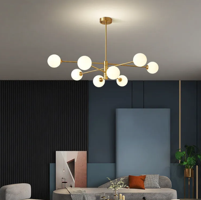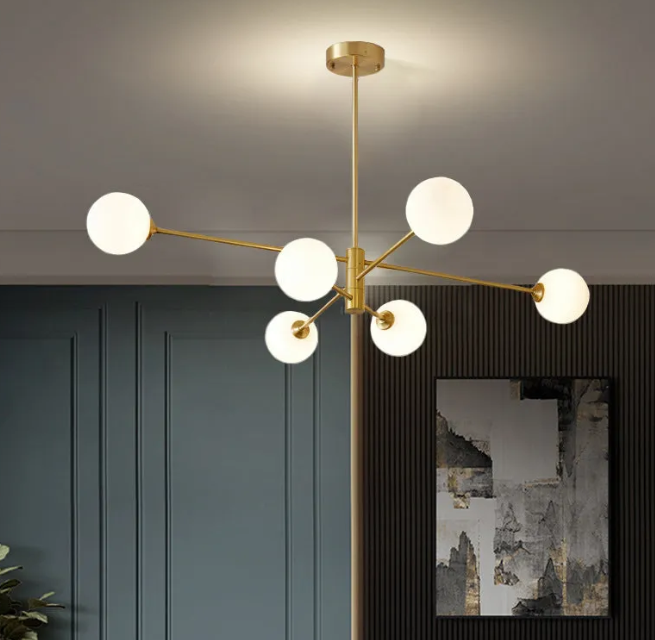 Elegance, style, sophistication. This 6 light pendant will get all the compliments no matter where you hang it. The smooth opal globes, refined brass arms and delicate structure make for a pretty beautiful light.