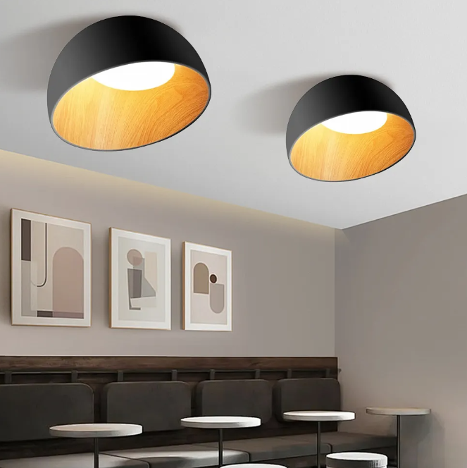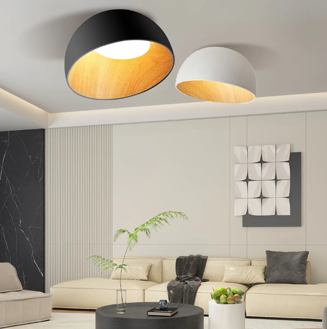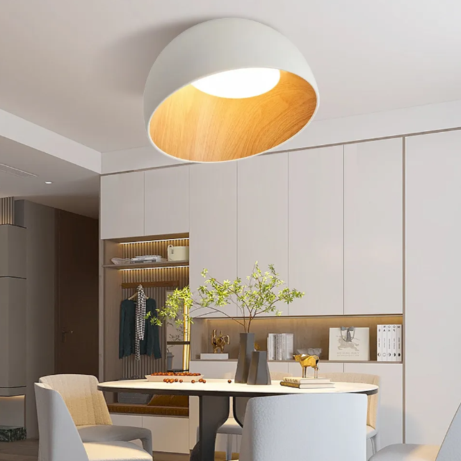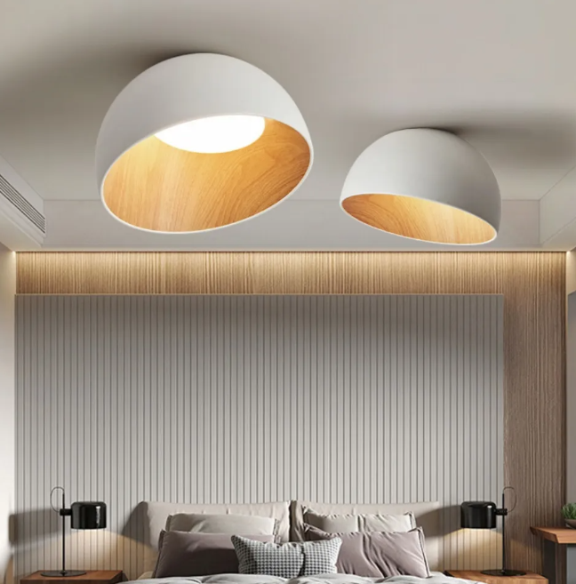 The simple and elegant ceiling shape fits the ceiling, saving space while evenly diffusing light to create a soft and quiet atmosphere. Its diagonal wood grain design is the finishing touch. The delicate texture of natural wood is looming in the flow of light and shadow. The diagonal lines break the monotony, highlighting the unique personality and injecting a unique style into the bedroom.