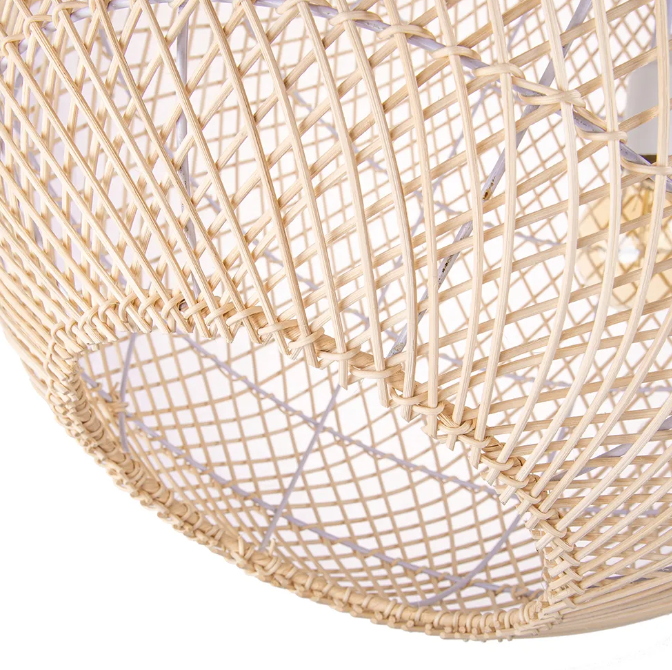 Made from natural rattan, the design is hand-woven to create a full and soft silhouette. Light diffuses gently through the gaps in the rattan weave, making it suitable for a variety of home decor styles.