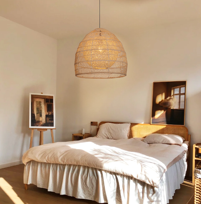 It is hand-woven with natural rattan, which is natural and unique. When the light is on, it reflects soft light and shadow, suitable for a variety of decoration styles.
