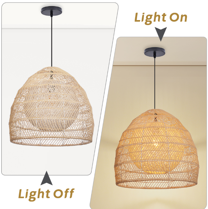 The rattan, bamboo, wooden and hemp rope chandeliers you purchase are 100% hand-woven. The disadvantage of hand-woven products is that there will be slight differences between the same lampshades. Thank you for understanding and respecting the labor success of every worker!