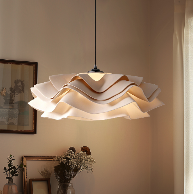 The ruffled petal design is gentle and elegant, adaptable to multiple decorating styles, and creates a warm atmosphere under soft lighting, combining practicality and beauty.