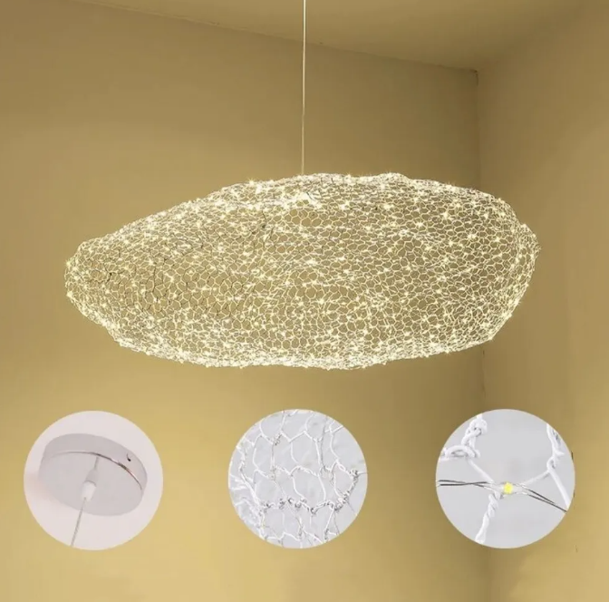 Its lampshade is made of tough and resilient iron wires carefully wound and woven, and the fine little lamp beads are hidden in it, like stars treasured by clouds. Whether it is placed in a simple Nordic-style living room or hung above an industrial-style restaurant, it easily becomes the most eye-catching presence in the space.