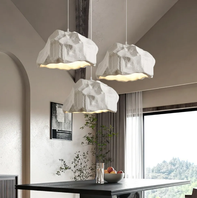 Dining Room Mountain Shape Resin Pendant Light Wabi-sabi Style Microcement Lampshade