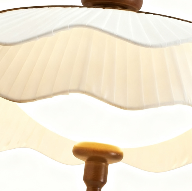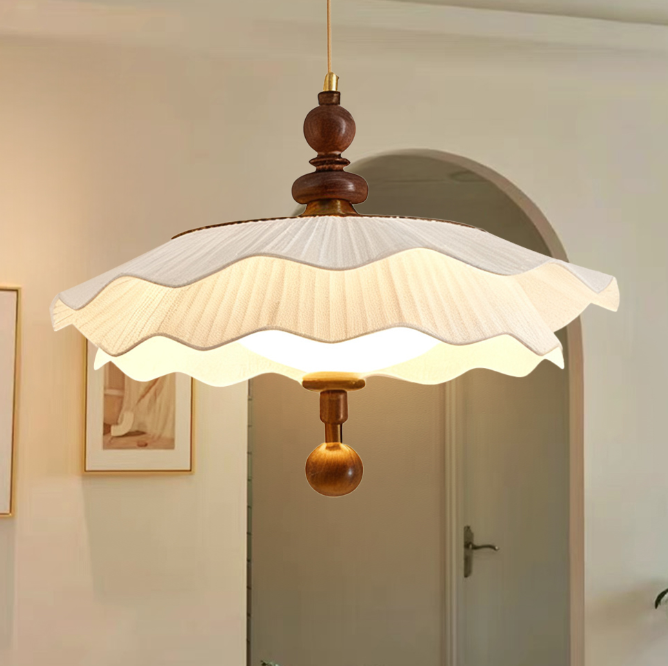 The retro fabric pleated lampshade, paired with a French vintage design, combines wood and metal to create a textured look. The three-color light can be switched freely, giving the dining room a romantic atmosphere and a retro style.