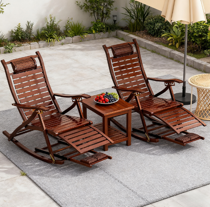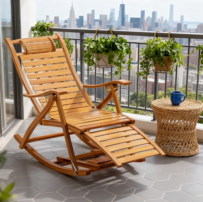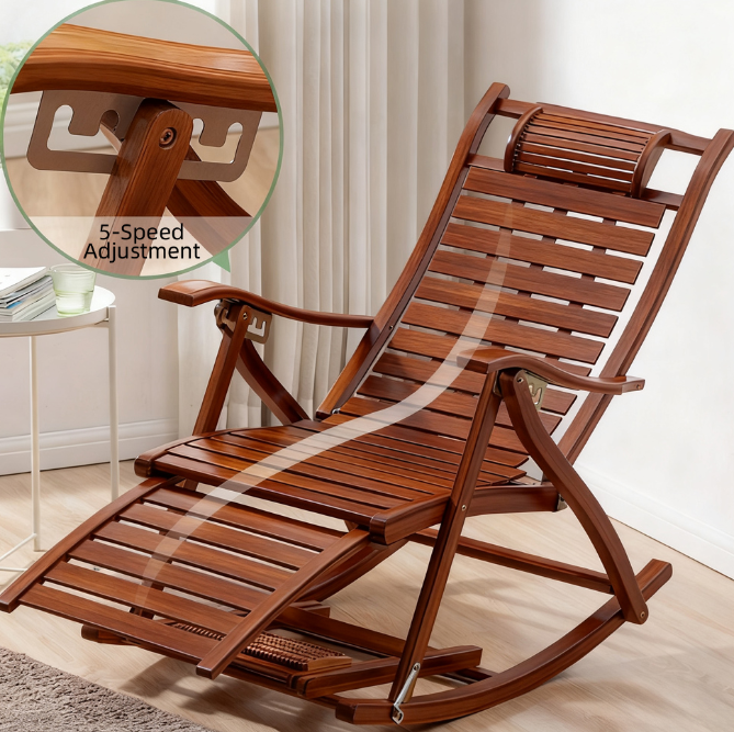 Made of carefully selected bamboo, it combines the leisurely rocking of a rocking chair with the comfortable leaning of a lounge chair. It takes up no space when folded, making it a cozy choice for leisure time.