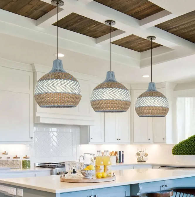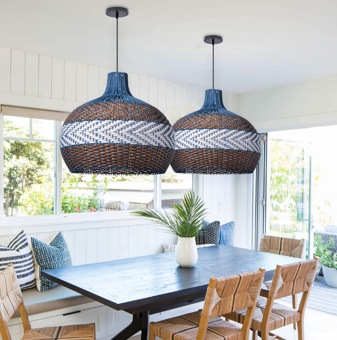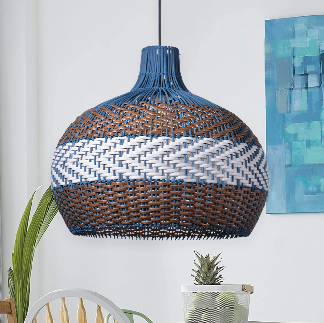 Crafted meticulously by skilled weavers, this pendant light features a unique blue-toned rattan weave that infuses any space with a soothing, coastal vibe.