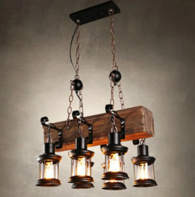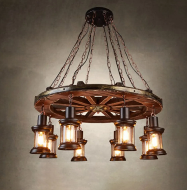 RETRO INDUSTRIAL DESIGN: Perfect combination of metal and wood frames, with rustic farmhouse style, the round wooden chandelier is perfect for kitchen, dining room, foyers, corridor, basement, bar, restaurants, coffee shop, club decoration.