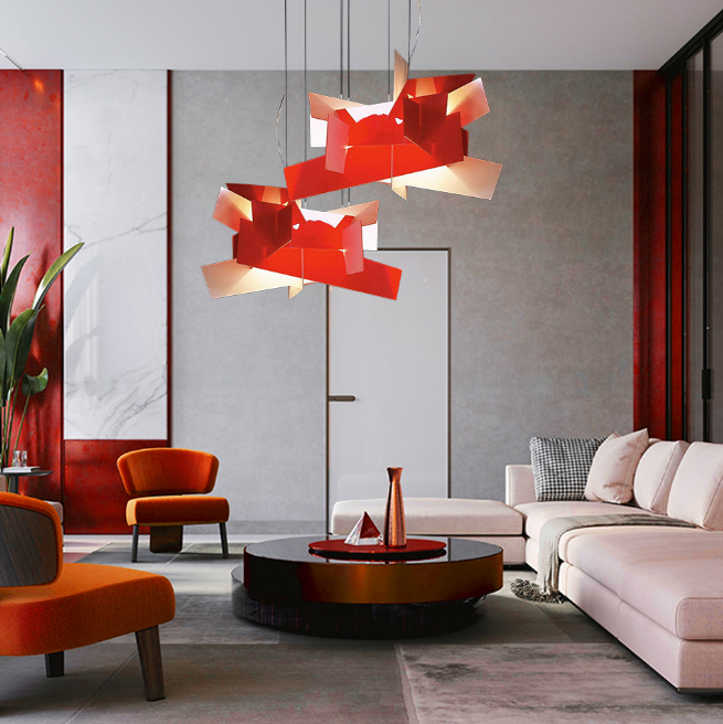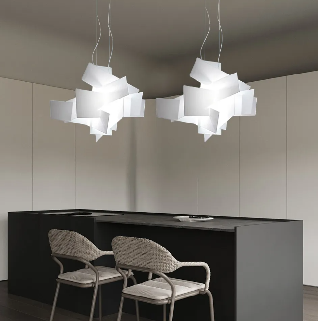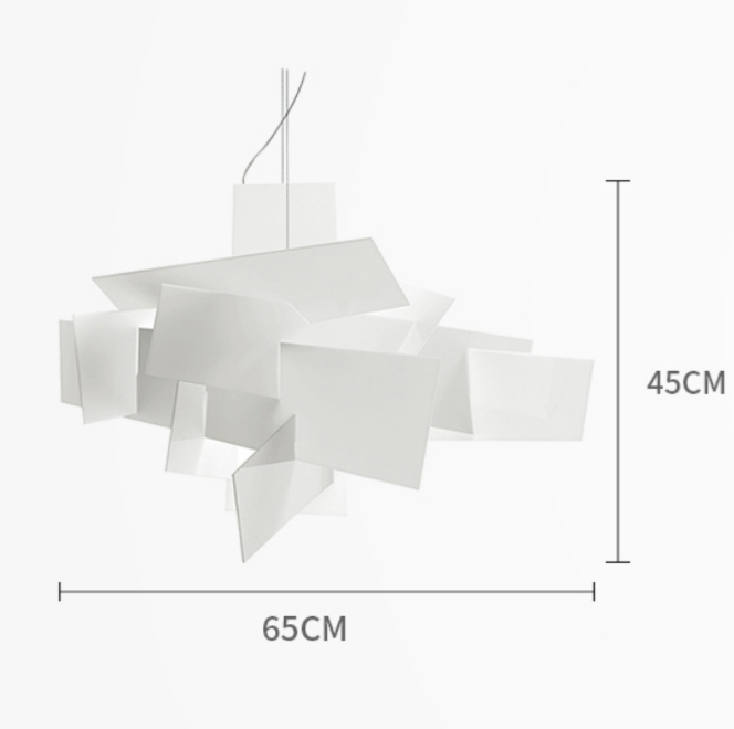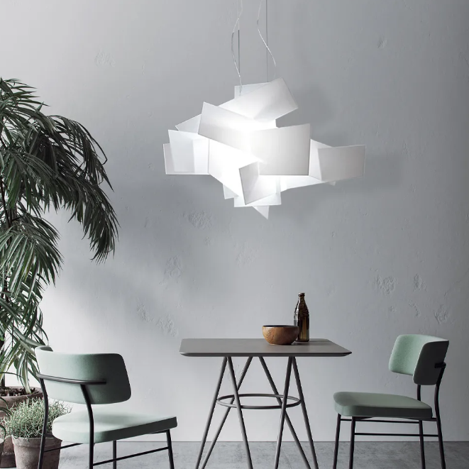 It is made of simple and creative stacking, as light and agile as paper art. It is hung in the space, serving as both lighting and a unique decoration. The soft light adds a unique touch to the dining atmosphere and reshapes the aesthetics of the dining room with modern design language.