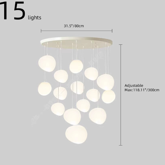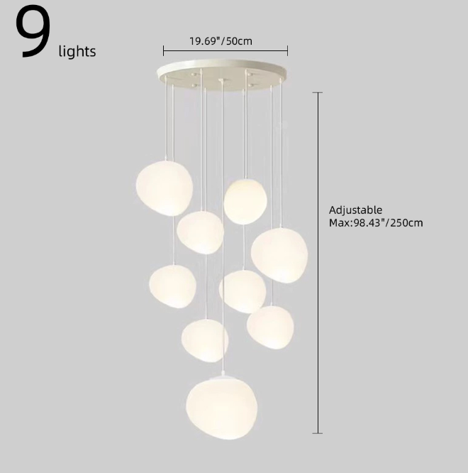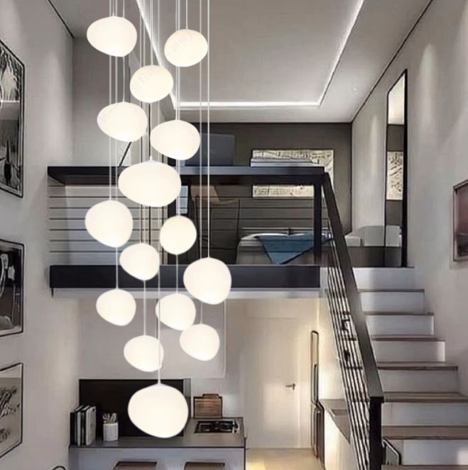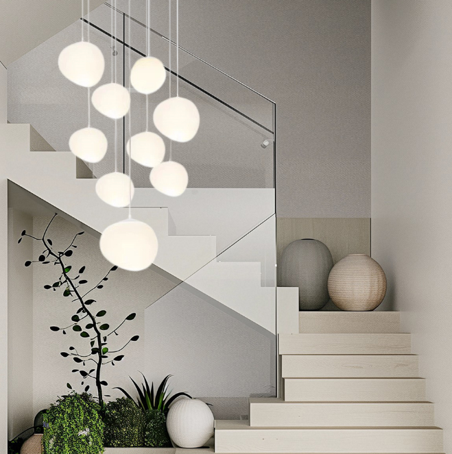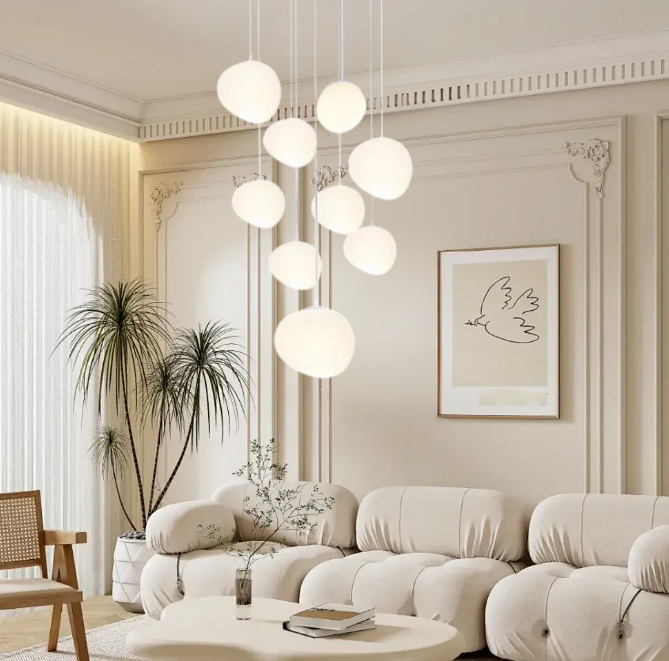 The staggered hanging arrangement cleverly creates a layered light and shadow effect, like a dance of light and shadow, imbuing the space with a unique rhythm. This chandelier is more than just a lighting tool; it is also an artistic embellishment to the space.