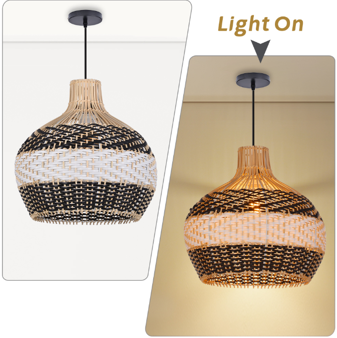 The rattan, bamboo, wooden and hemp rope chandeliers you purchase are 100% hand-woven. The disadvantage of hand-woven products is that there will be slight differences between the same lampshades. Thank you for understanding and respecting the labor success of every worker!