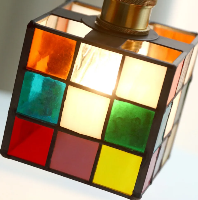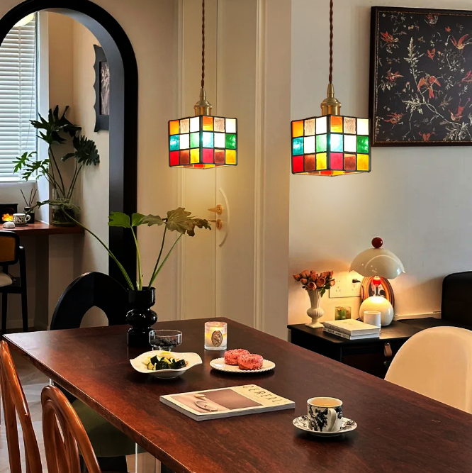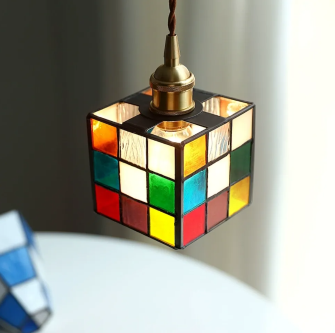 This small chandelier is a charming encounter between traditional craftsmanship and modern aesthetics. It attracts attention with its unique Rubik's Cube shape. Each side of the colored glass is handmade by craftsmen. The colors are warm and layered, perfectly presenting the naturalness and simplicity of Japanese aesthetics. Whether it is hung in the living room, bedroom or study, it can become a unique artistic embellishment in the space.