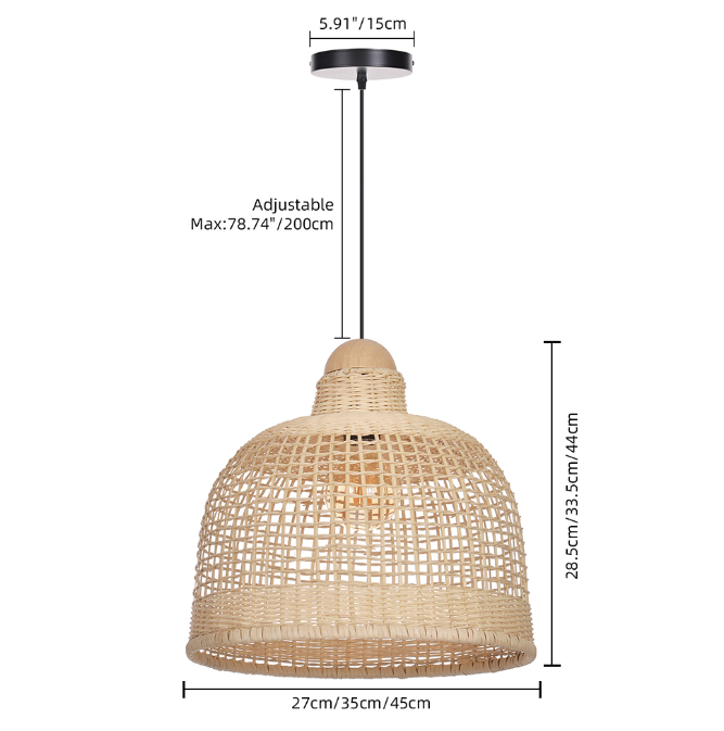 The rattan, bamboo, wooden and hemp rope chandeliers you purchase are 100% hand-woven. The disadvantage of hand-woven products is that there will be slight differences between the same lampshades. Thank you for understanding and respecting the labor success of every worker!