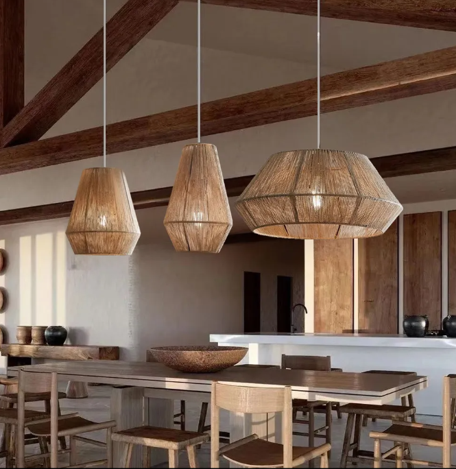 The lampshade is hand-woven from hemp rope. The overall shape is simple and artistic. It can easily become the visual center of the restaurant. Whether it is a traditional Japanese restaurant with wooden tables and chairs, or a dining space decorated in a modern minimalist style, it can be cleverly integrated with it.