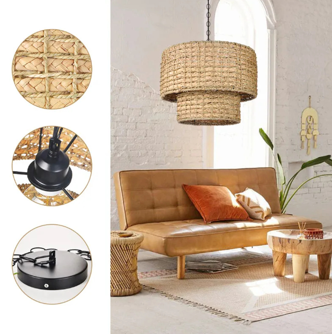 The rattan, bamboo, wooden and hemp rope chandeliers you purchase are 100% hand-woven. The disadvantage of hand-woven products is that there will be slight differences between the same lampshades. Thank you for understanding and respecting the labor success of every worker!