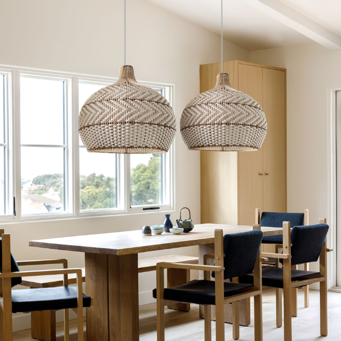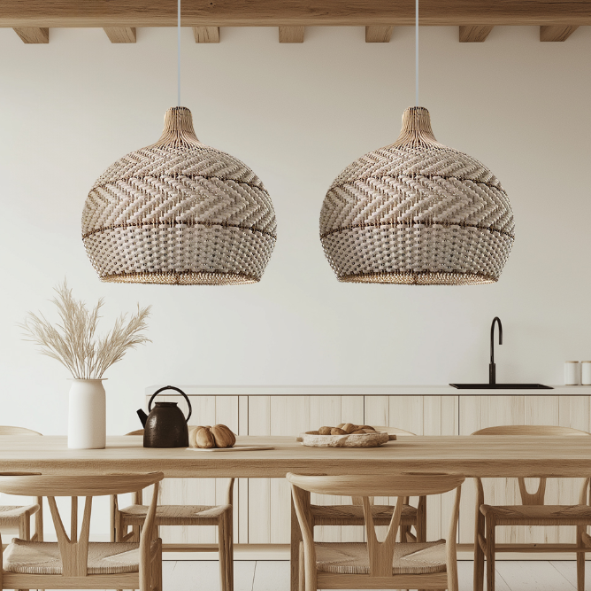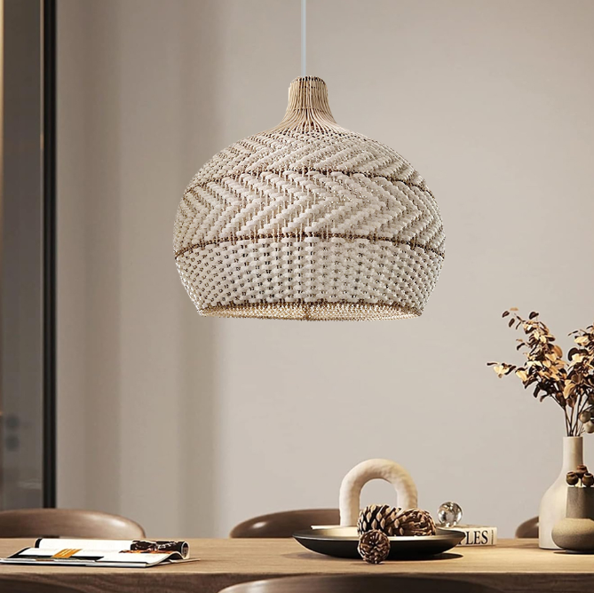 This pendant light is handcrafted from carefully selected natural rattan, blending the white color with the natural texture of the rattan to create a simple yet elegant Japanese aesthetic. It will add a unique style and ambiance to your dining room.