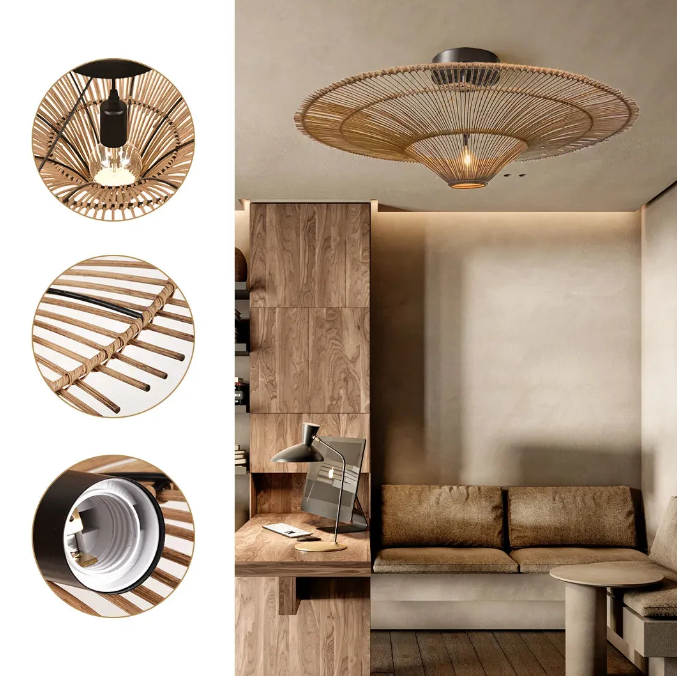 The rattan, bamboo, wooden and hemp rope chandeliers you purchase are 100% hand-woven. The disadvantage of hand-woven products is that there will be slight differences between the same lampshades. Thank you for understanding and respecting the labor success of every worker!
