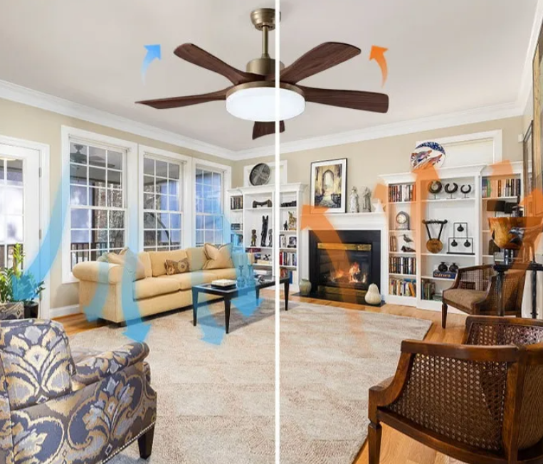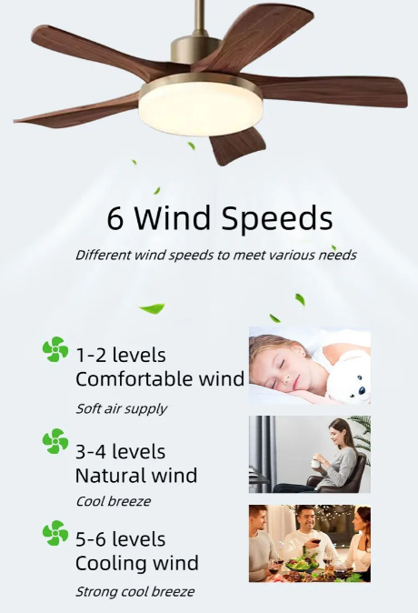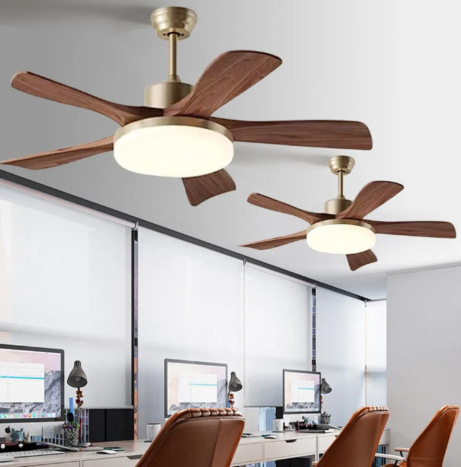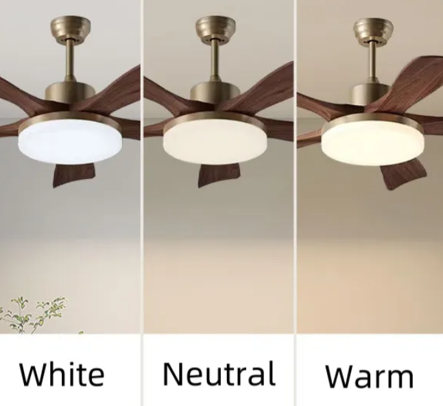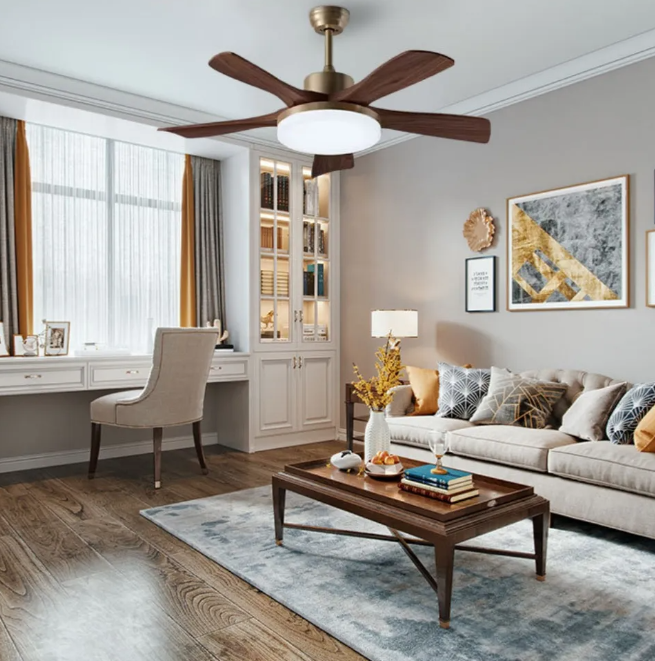 Living Room Fan Retro Solid Wood Smart Ceiling Fan Light