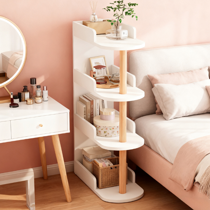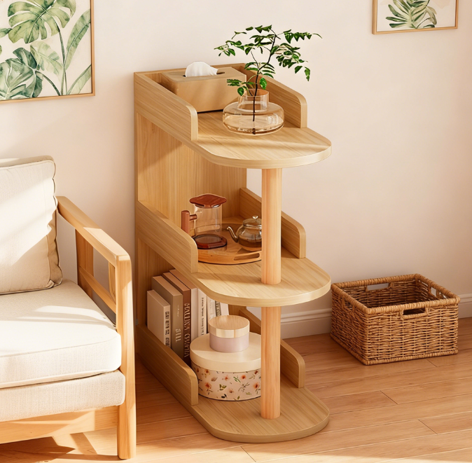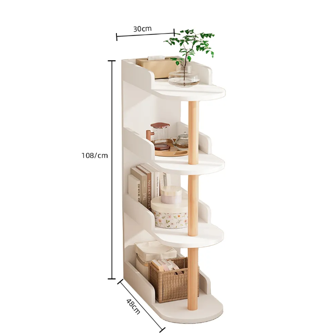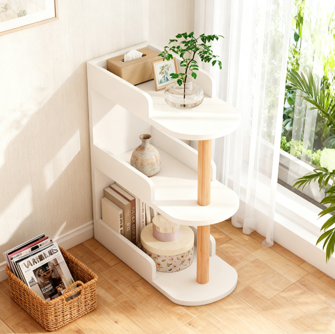 This mini living room storage cabinet is designed to fit in gaps, adapts to a wide range of sizes, and has multi-layered staggered shelves for flexible storage of miscellaneous items.