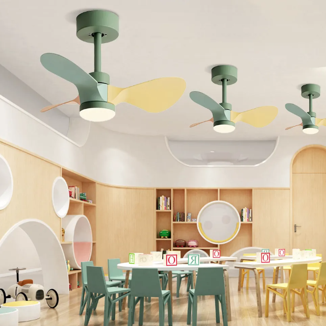 This ceiling fan features plastic blades and a durable plastic light cover, making it ideal for playrooms and home gyms. It adds a subtle pop of color to your kid’s rooms, home offices, and other indoor spaces.