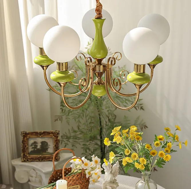Spread throughout the area, its comforting shimmering light emanating from the soothing green shades creates a pleasant atmosphere.