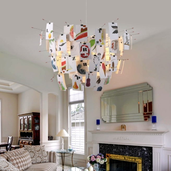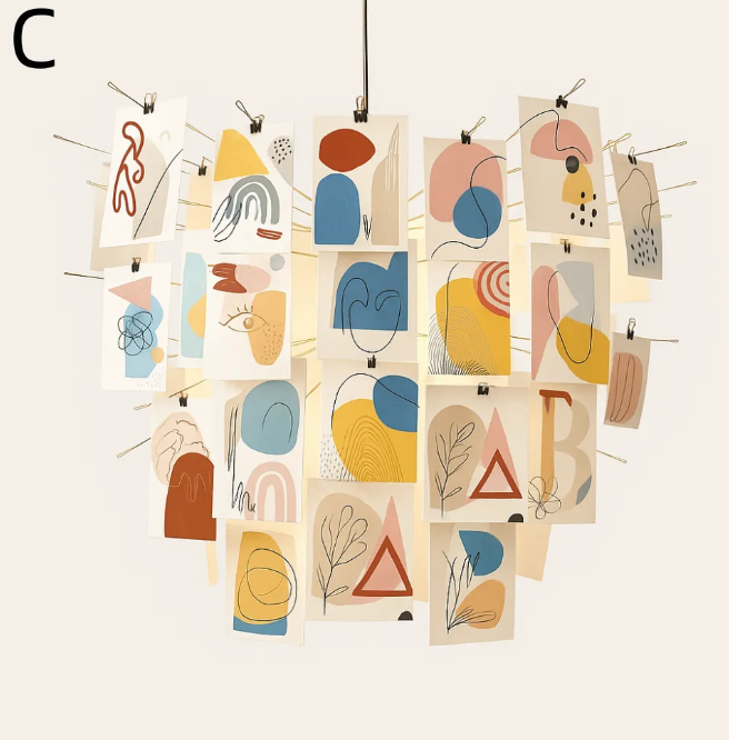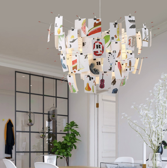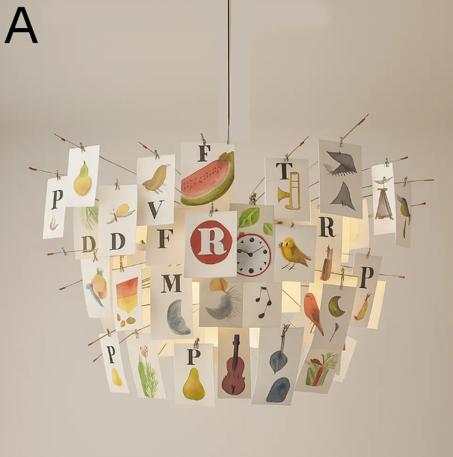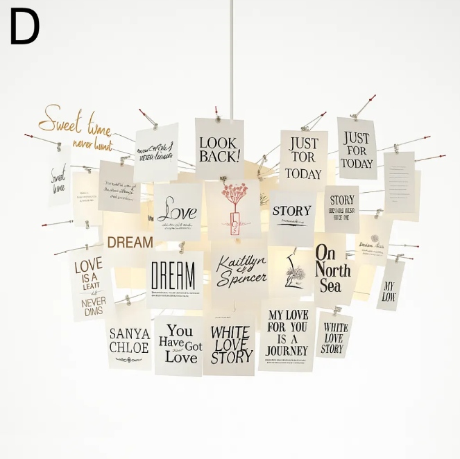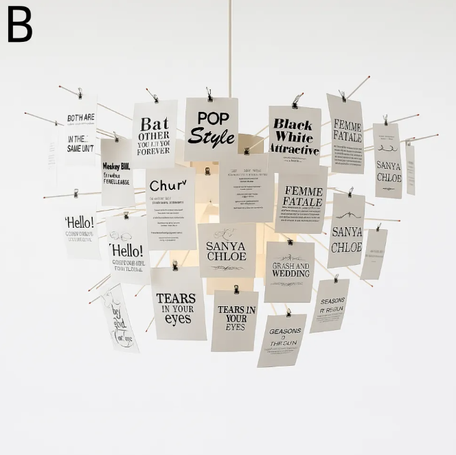 The creative DIY art card lamp is not only an eye-catching chandelier in the living room, but also a magic tool for creating atmosphere in the bedroom! The lamp body is simple and flexible, and the cards can be replaced freely. When lit, warm light shines through the cards, forming a unique focus.