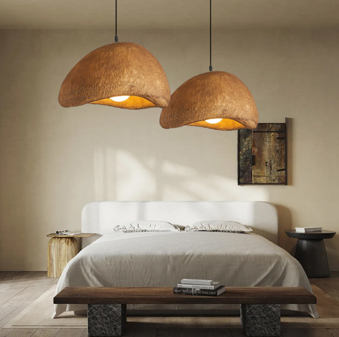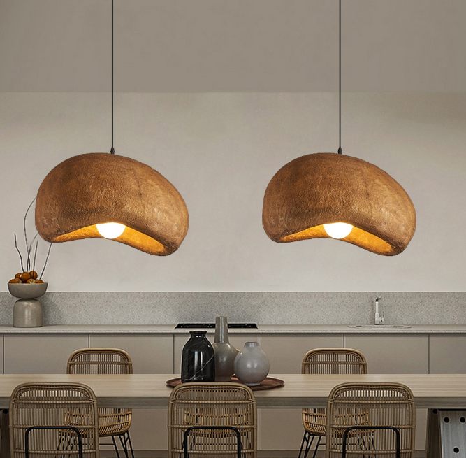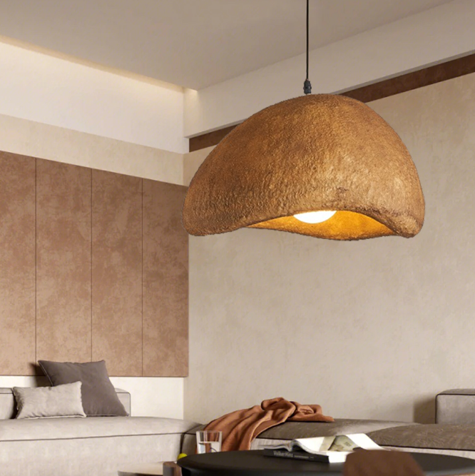 Its unique cloud shape looks like an art installation suspended in the air. The texture on the surface of the lampshade fully demonstrates the original texture of Wabi-Sabi aesthetics. The light and shadow shuttle back and forth, forming a hazy halo, warm but not dazzling. Whether it is to add a lazy atmosphere to the living room or to illuminate the daily life of the kitchen island, it can be a perfect fit.