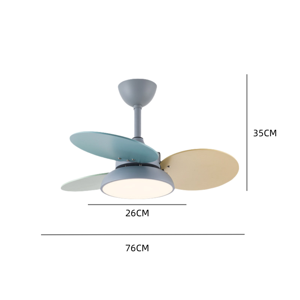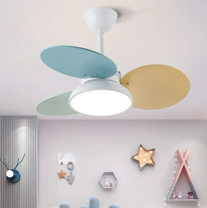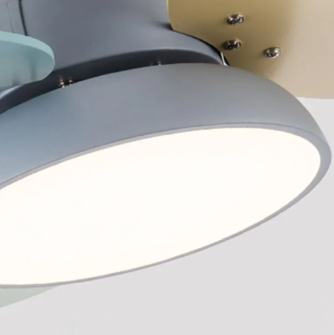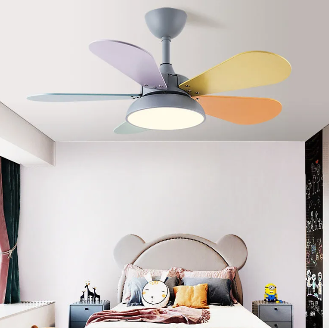 Compact ceiling fan with multi-color blades delivers powerful air circulation.The color of the ceiling fan with light is warm and fashionable, full of childlike fun. It is suitable for use in the children's room to stimulate children's childlike innocence and creativity.