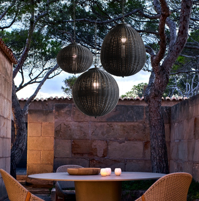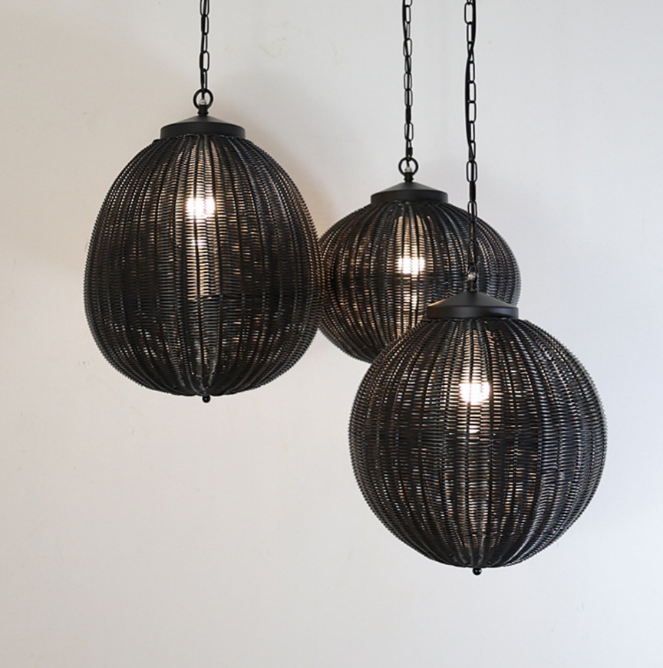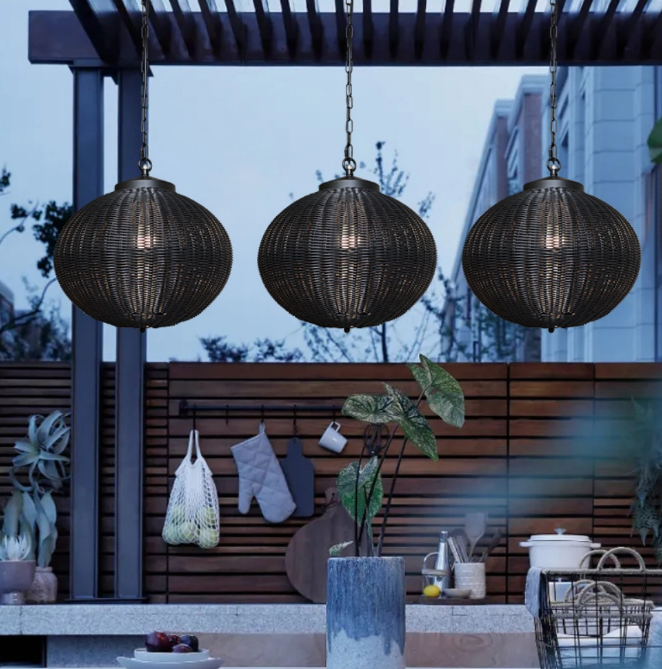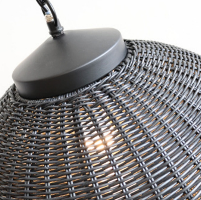 This black rattan outdoor waterproof chandelier perfectly combines retro texture with practical performance. It is hand-woven with high-quality rattan. The black appearance is low-key yet stylish, showing the natural and simple beauty. The soft light shines through the rattan lampshade, creating a warm and romantic atmosphere, adding unique charm to your outdoor space.