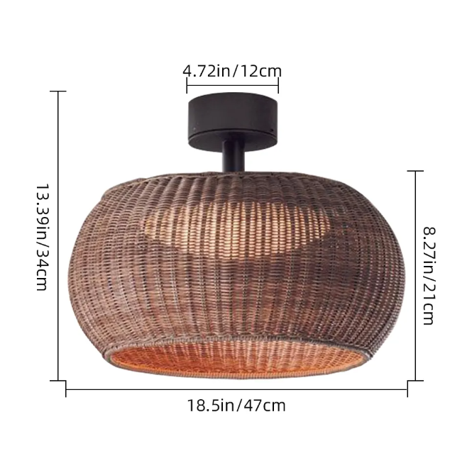 Outdoor Waterproof Rattan Ceiling Lampshade Porch Light