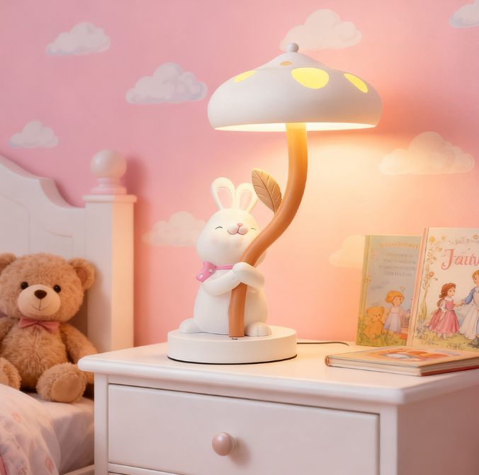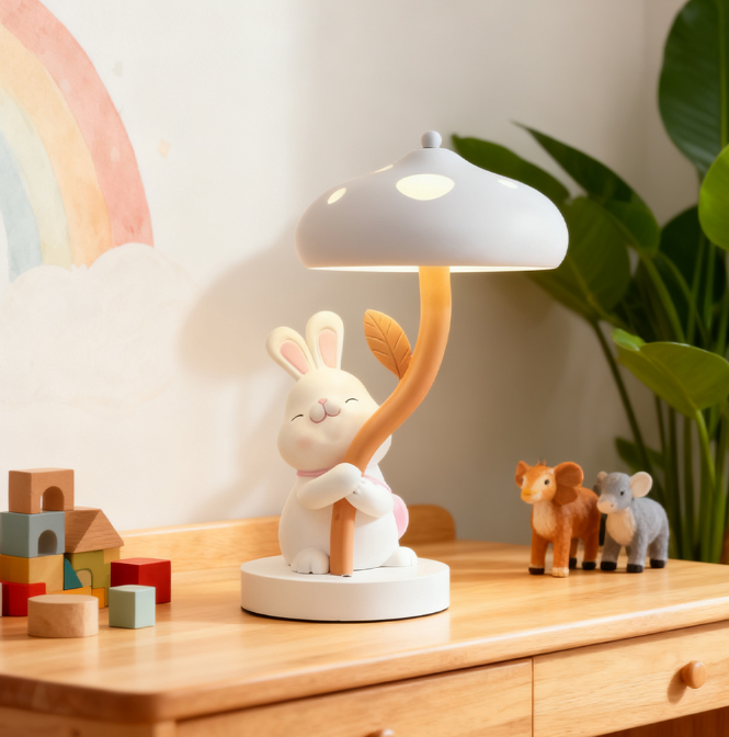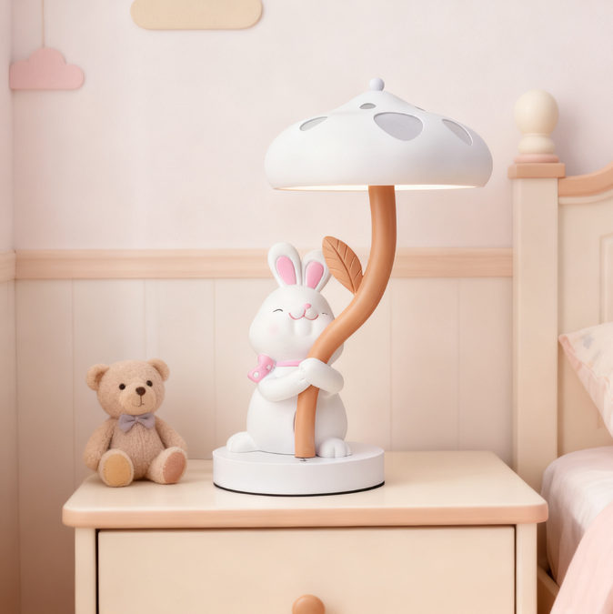With its rounded bunny ears and smooth, edgeless design, this lamp is both safe and adorable. The soft, warm light is not glaring. It serves as both a practical bedside lamp and a fun decorative piece for a child's room.