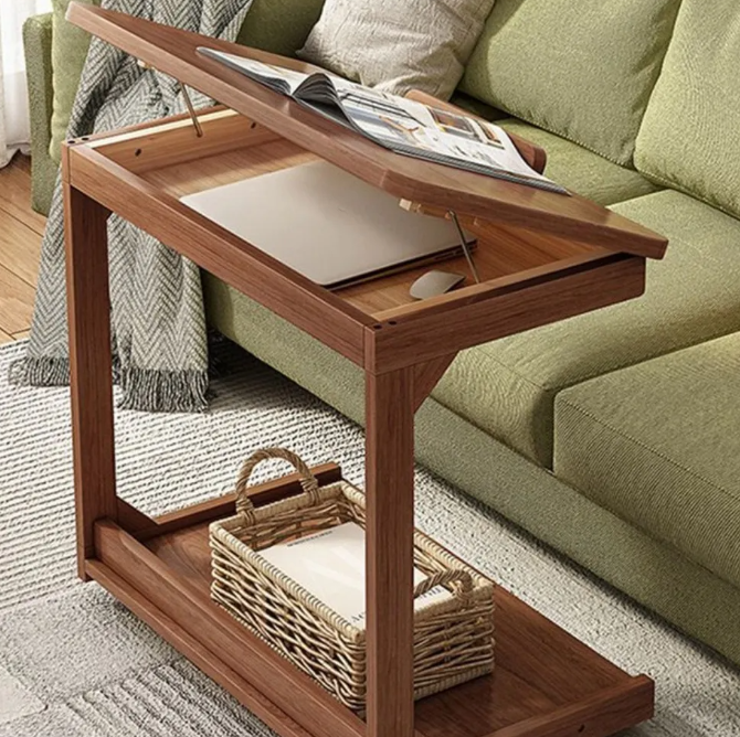 Made of high-quality solid wood, with a detachable flip design and an open storage space on the lower level, it can be perfectly adapted whether placed in the living room or beside the bed as a temporary desk, bringing both convenience and quality to your life.