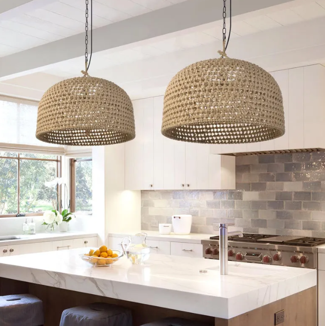 Rope woven pendant light chandelier. Transform your space with the captivating allure of our rattan lighting chandelier.Handcrafted with intricate weaving, it infuses any room with rustic elegance and warm, inviting illumination. Elevate your decor with design trends today!