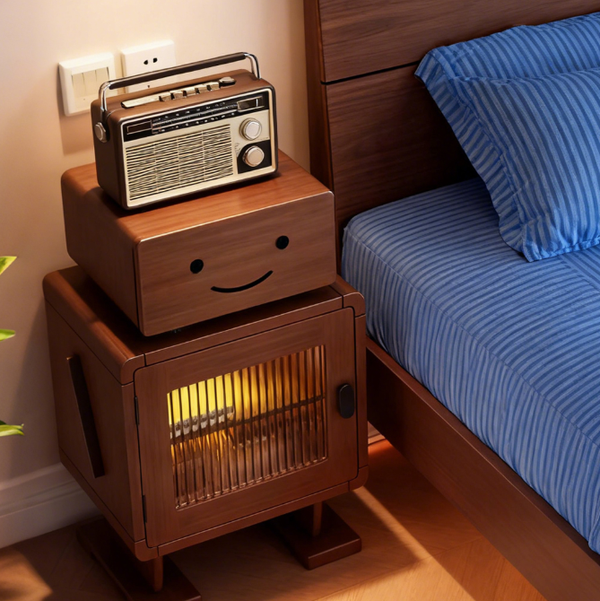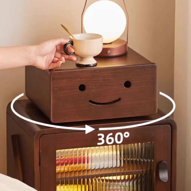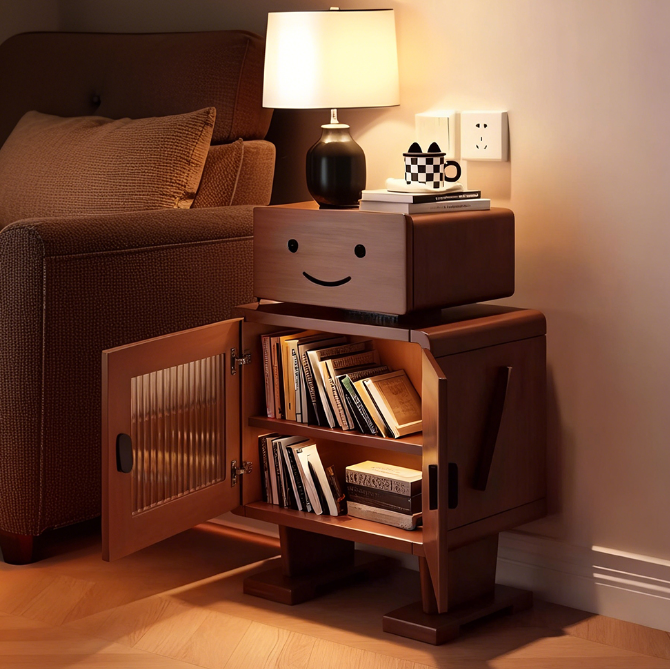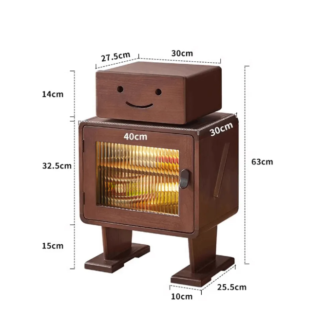 Made entirely of solid wood, it is shaped like a cute robot with a rotatable head and built-in ambient light strip, combining fun and atmosphere.