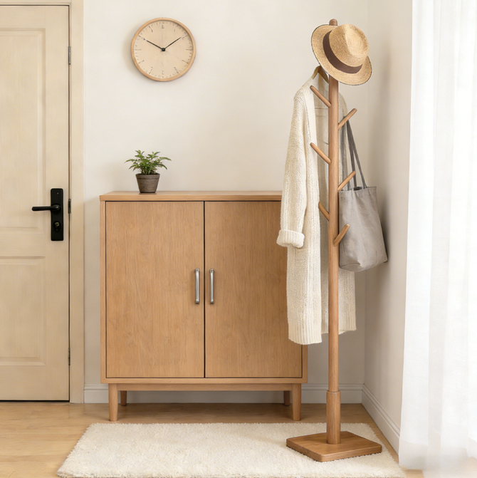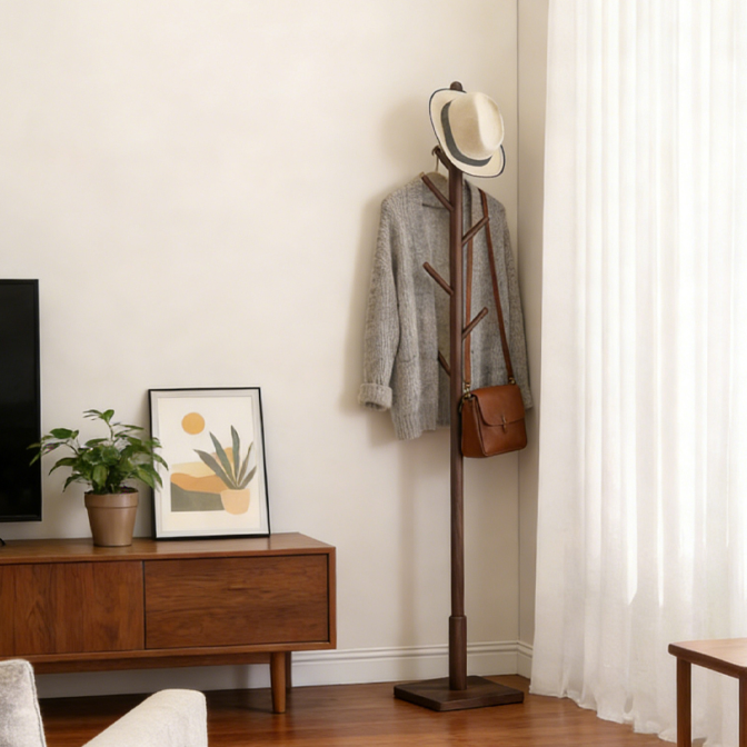 Made of solid wood, this unique tree branch design features multiple hanging positions extending from a single pole, easily storing everyday clothes while combining practical hanging functionality with a decorative touch.