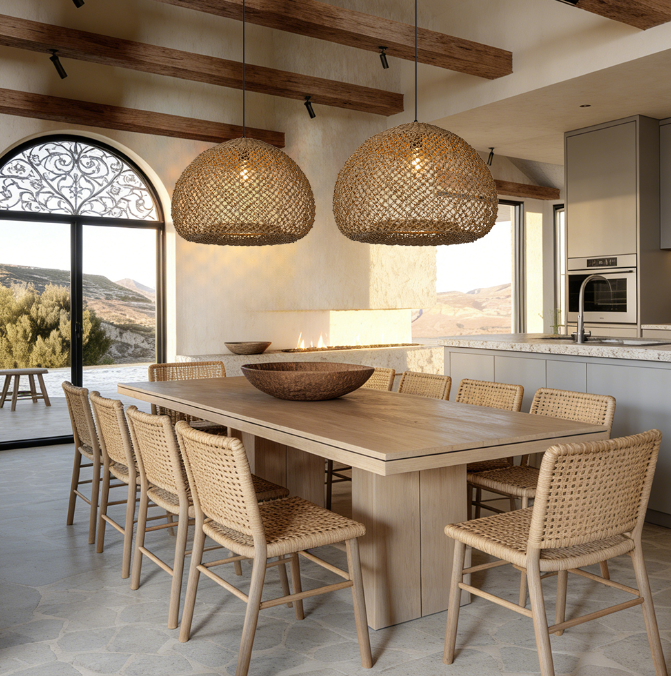 Made from carefully selected natural seaweed, the open weaving technique allows light to diffuse naturally through the texture, creating a warm and dappled interplay of light and shadow that lends a cozy and relaxing atmosphere to the dining room.