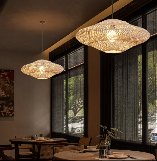Capture the light spots of the forest into the dining room — Made of selected natural rattan, it is hand - woven into a unique UFO shape with natural and simple texture. It creates a quiet, relaxed and wild - natural wabi - sabi atmosphere for the dining space.