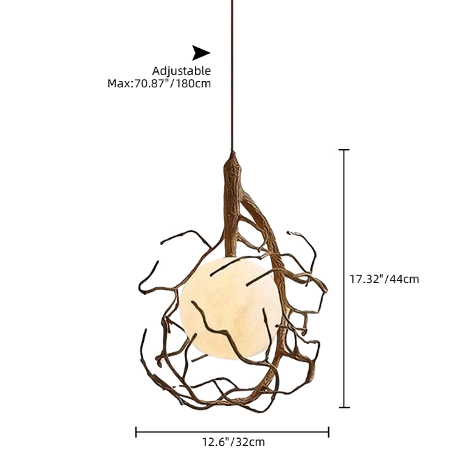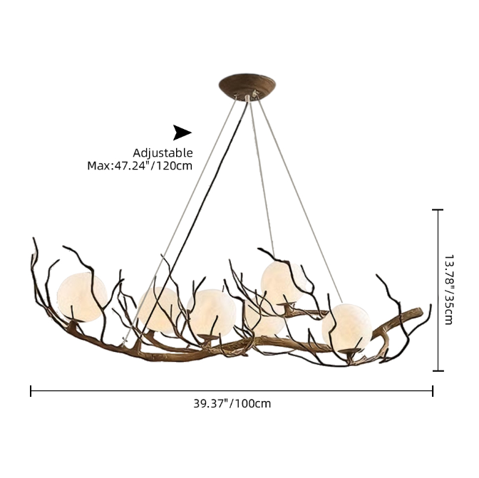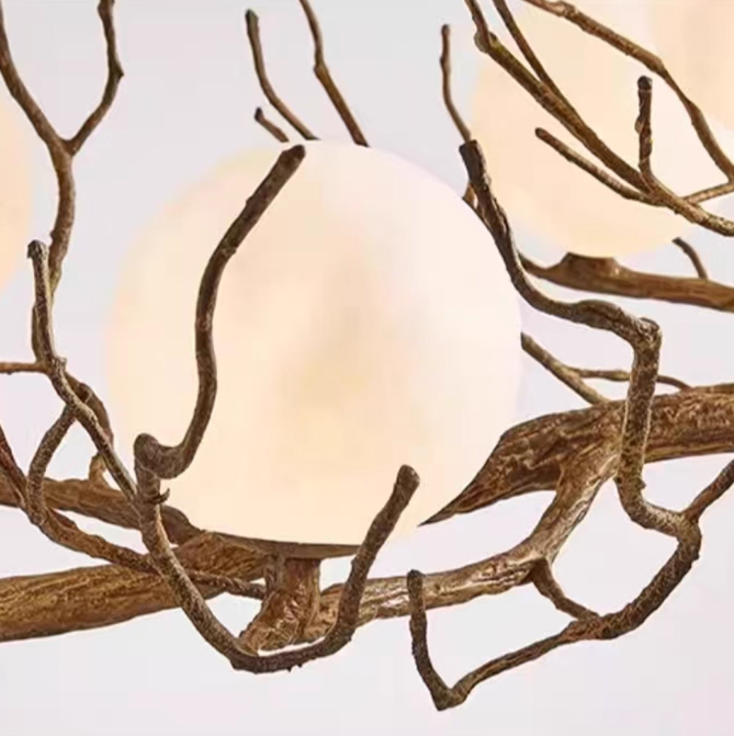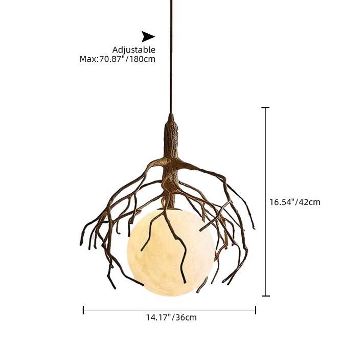 Inspired by natural tree branches, this artistic branch-shaped chandelier features a rounded spherical lampshade. Warm light emanates to create a relaxed ambiance, effortlessly becoming the artistic focal point of any space.