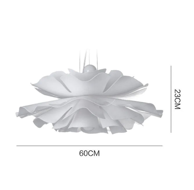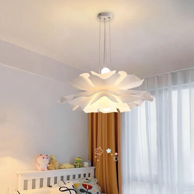 This charming white flower pendant light managed to combine practicality with elegance. And the design of this product is overall more modern. When lit, lighting diffuses from the acrylic shade to cast a romantic ambiance.This pendant light resembles a blooming flower, imparting great conciseness and elegance to your house.